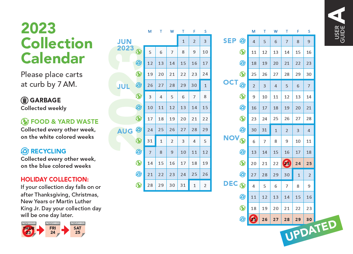 Customer’s biweekly recycling and yard waste collections will continue as normal through the end of the year.